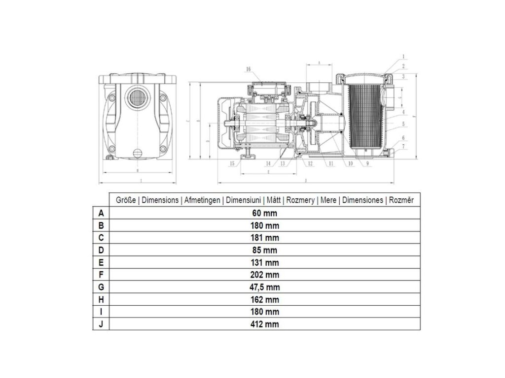 S naším bazénovým čerpadlom s výkonom 6 m³/hod. si môžete byť istí, že voda vo vašom bazéne bude vždy čistá, priezračná a vhodná na kúpanie. Vďaka kompaktnému dizajnu a vysokej účinnosti je toto čerpadlo ideálnou voľbou pre bazény do 35 m³. Jednoduchý a intuitívny dizajn čerpadla umožňuje rýchlu a ľahkú inštaláciu bez potreby profesionálneho technika. Pripojenie je prispôsobené flexibilným hadiciam s priemerom 32 alebo 38 mm. Je vybavené predfiltrom na hrubšie nečistoty, priehľadné veko predfiltra umožňuje jednoduchú kontrolu zanesenia predfiltra.
