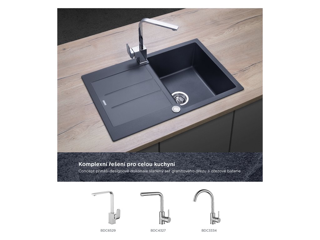 Atraktívny vzhľad, kvalitné spracovanie, vysoká odolnosť a ľahká údržba, to sú hlavné prednosti granitových drezov Concept. Perfektne zapadnú do každej kuchyne a v kombinácií s batériami Concept tvoria dokonale zladený celok. Model DG10C45dg je súčasťou designovej rady CUBIS, ktorú spájajú moderné hranaté línie a v kuchyni pôsobí veľmi nadčasovým a elegantným dojmom.