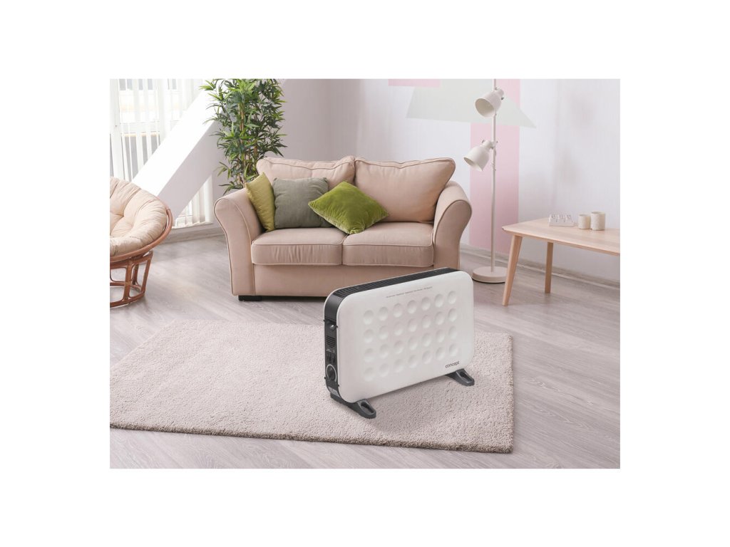 Konvektor je vybavený termostatom, vďaka ktorému budete mať v miestnosti vždy ideálnu teplotu. Pri zapnutej funkcii kúrenia sa bude spotrebič striedavo zapínať a vypínať a tým udržovať zvolenú teplotu. Zbytočne tak nebude dochádzať k prekurovaniu priestoru a naviac ušetríte aj peniaze za spotrebu energie.