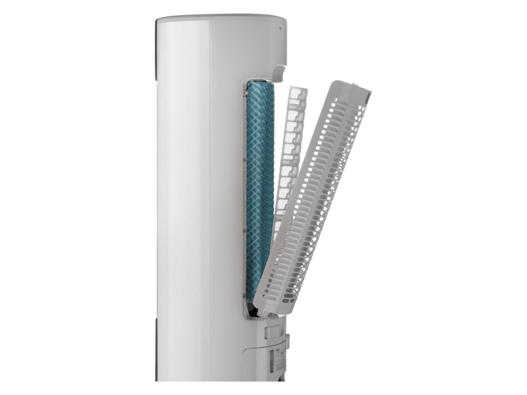Prístroj prefukuje vzduch cez vodné filtre, a tým dochádza k jeho ochladeniu. K prevádzke tak stačí naplniť nádržku vodou, a pokiaľ chcete vzduch ešte viac ochladiť, pridáte k vode chladiace náplne, ktoré sú súčasťou balenia. Zásobník s ukazovateľom vodnej hladiny má objem 7 l. Pokiaľ ho vyberiete alebo bude prázdny, prístroj sa automaticky vypne.