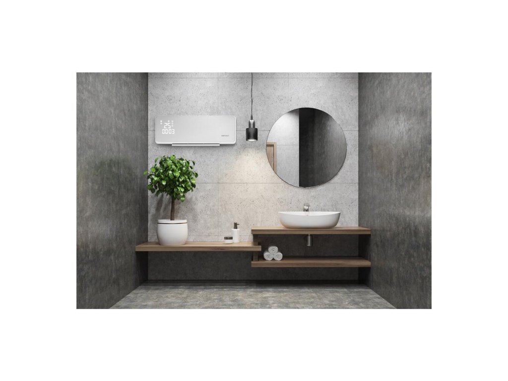 Je vhodný k vykurovaniu miestností do veľkosti 20 m2. Vďaka stupňu krytia IP22 je odolné proti vlhkosti, takže ho môžete použiť aj do kúpeľne. Ponúka 2 stupne výkonu pre voľbu teplého alebo horúceho vzduchu, funkcia ventilátora a nastaviteľnú osciláciu lamiel pre efektívnu distribúciu tepla. Je vybavený moderným LED displejom s ukazovateľom teploty a diaľkovým ovládačom pre pohodlnú reguláciu. Pre zaistenie bezpečnej prevádzky je opatrený ochranou proti prehriatiu.