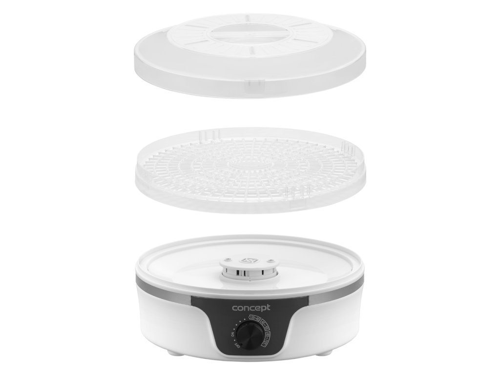 Sušička je opatrená integrovaným ventilátorom, ktorý rozháňa horúci vzduch medzi jednotlivé poschodia. Pre dosiahnutie ešte efektívnejšieho výsledku odporúčame počas sušenia sitá preskladať tak, aby sa spodné sitá dostali hore a horné dole. Budete mať istotu, že vaša úroda bude rovnomerne usušená, a to vo všetkých poschodiach sušičky.
