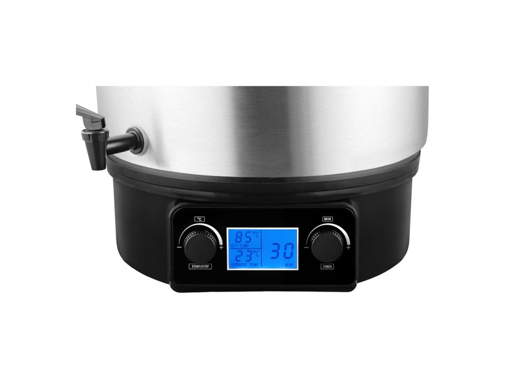 Zavárací hrniec ZH0040 je plne automatický. Disponuje dvoma ovládacími gombíkmi pre nastavenie teploty a času. Teplotu môžete plynule regulovať od 30 do 100 °C a časový spínač umožňuje nastavenie v rozmedzí od 1 do 120 minút alebo je možné zvoliť nepretržitú prevádzku. Nastavené údaje môžete kontrolovať na prehľadnom LCD displeji. Na koniec programu vás upozorní zvuková signalizácia.
