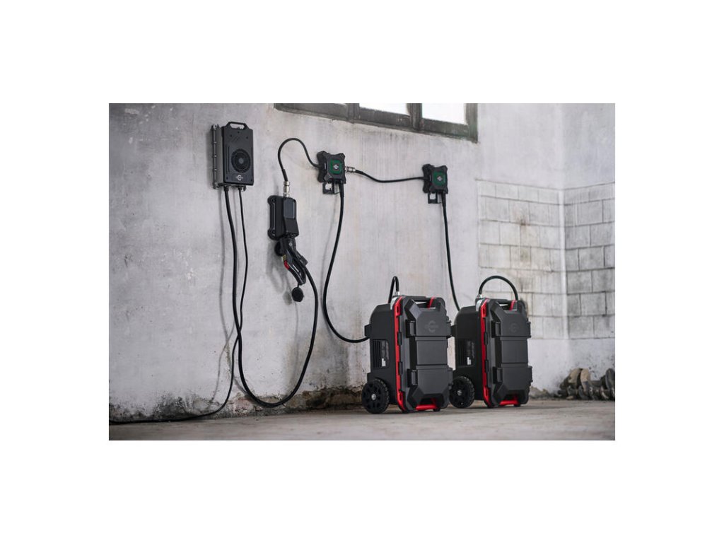Když je připojeno více stanic Caddy, switch detekuje, kdy je Caddy plně nabitá a předá proud dalšímu switchi.