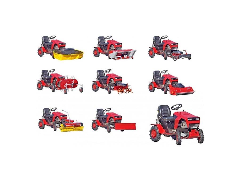 ✔️ Bohaté príslušenstvo zahŕňa pluhy, brány, rotačné kosačky aj zametače