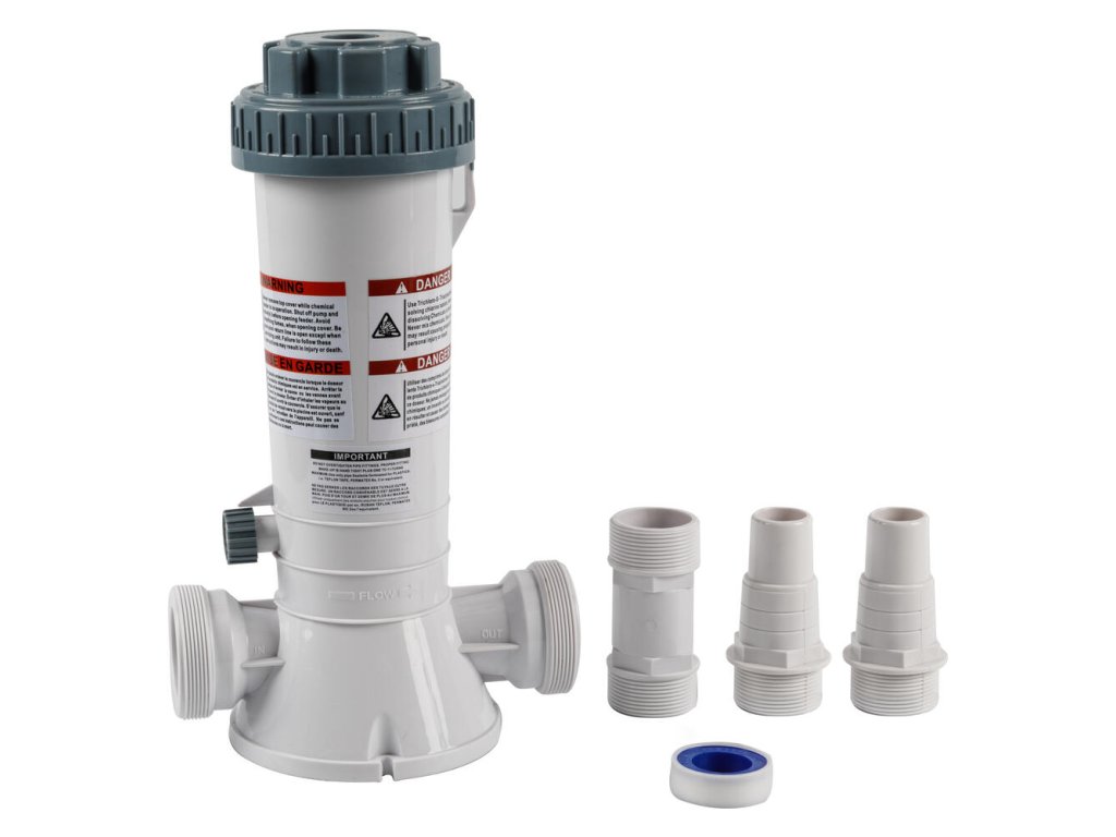 Tento elegantný a vysoko účinný automatický dávkovač chlóru je ideálnou voľbou pre váš bazén alebo vírivku. Je navrhnutý na jednoduchú inštaláciu do vratného potrubia a používa pomaly rozpustný trichlór-S-triazinetrión (Tri-Chlor) vo forme veľkých alebo malých tabliet alebo tyčiniek. Pre maximálnu bezpečnosť a účinnosť odporúčame používať len tento typ chemikálie.