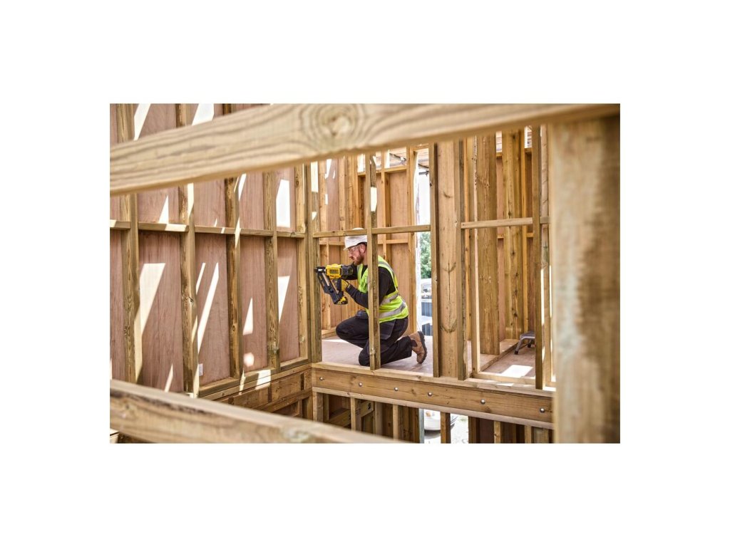 Bezuhlíkový motor 18 V pre predĺženú životnosť, účinnosť a výkon schopný zatĺkať zapustené klince s krúžkovou stopkou s dĺžkou 90 mm do dreva strednej hustoty.