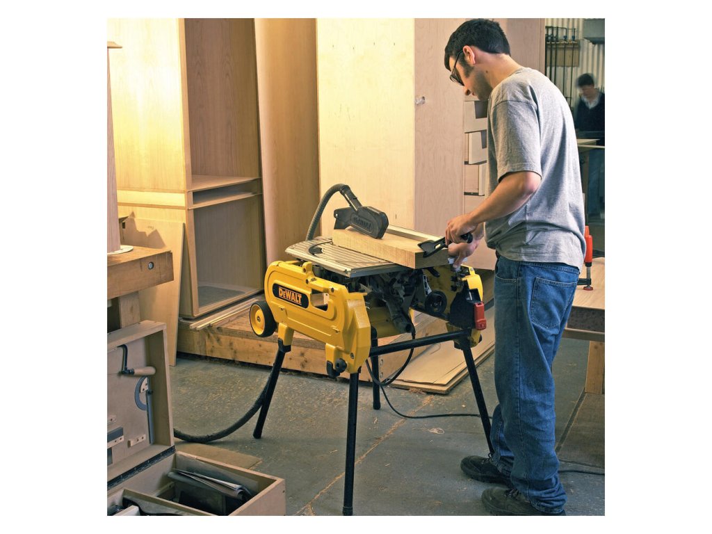 Prídavné kolieska a transportný režim značne uľahčujú prepravu píly po stavenisku.