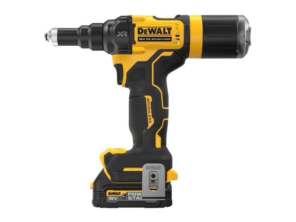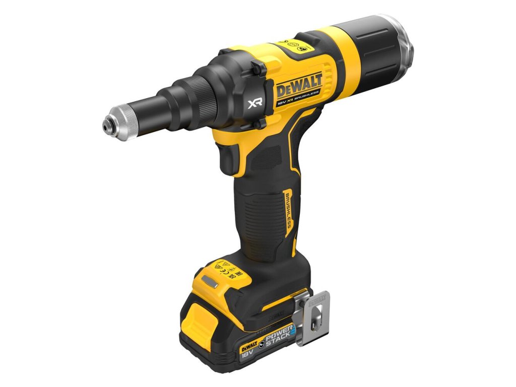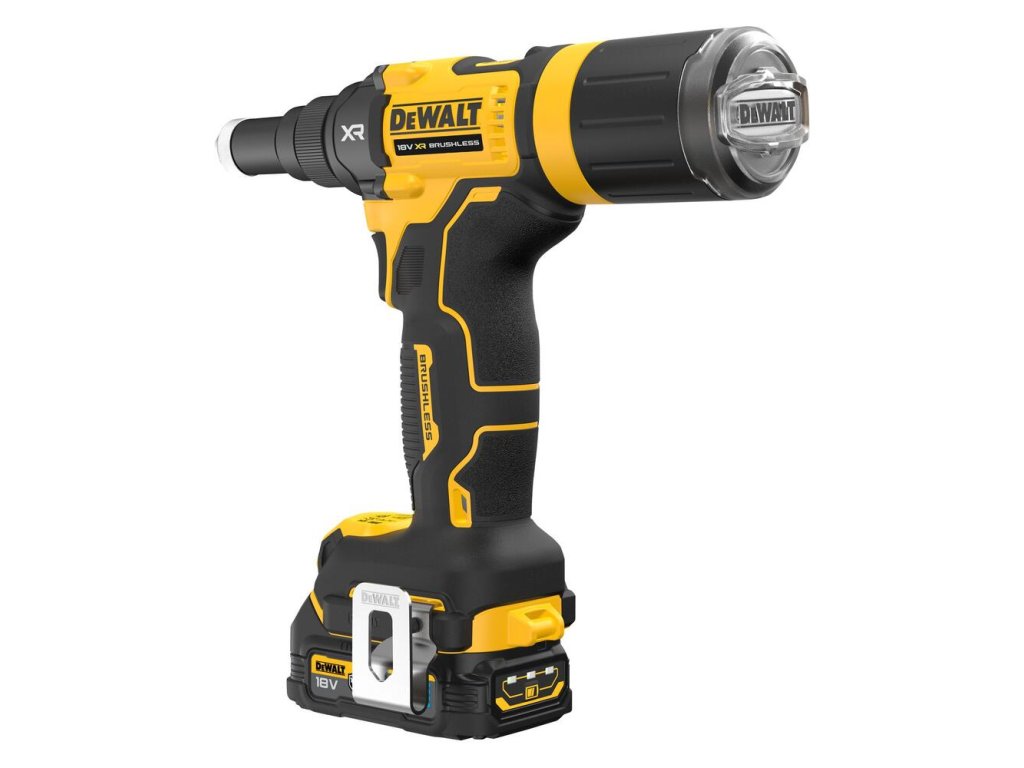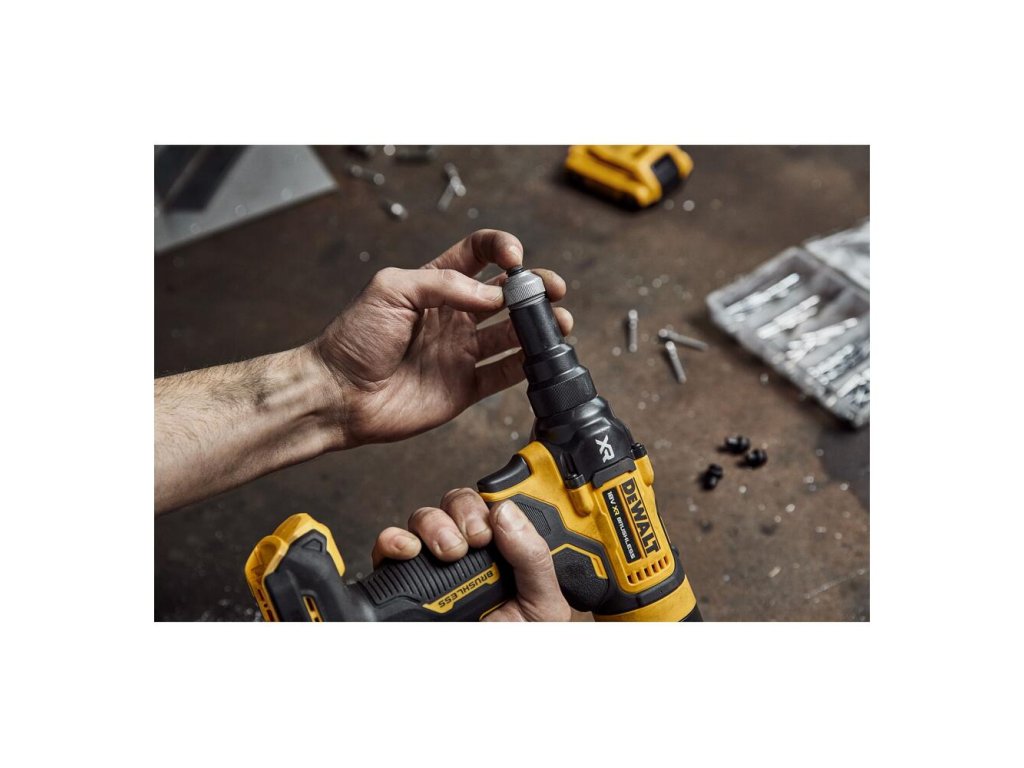 Inštalujte hliníkové, oceľové a nerezové slepé nity s priemerom až do veľkosti 4,8 mm pomocou akumulátorového bezuhlíkového nitovacieho náradia 18 V XR®.