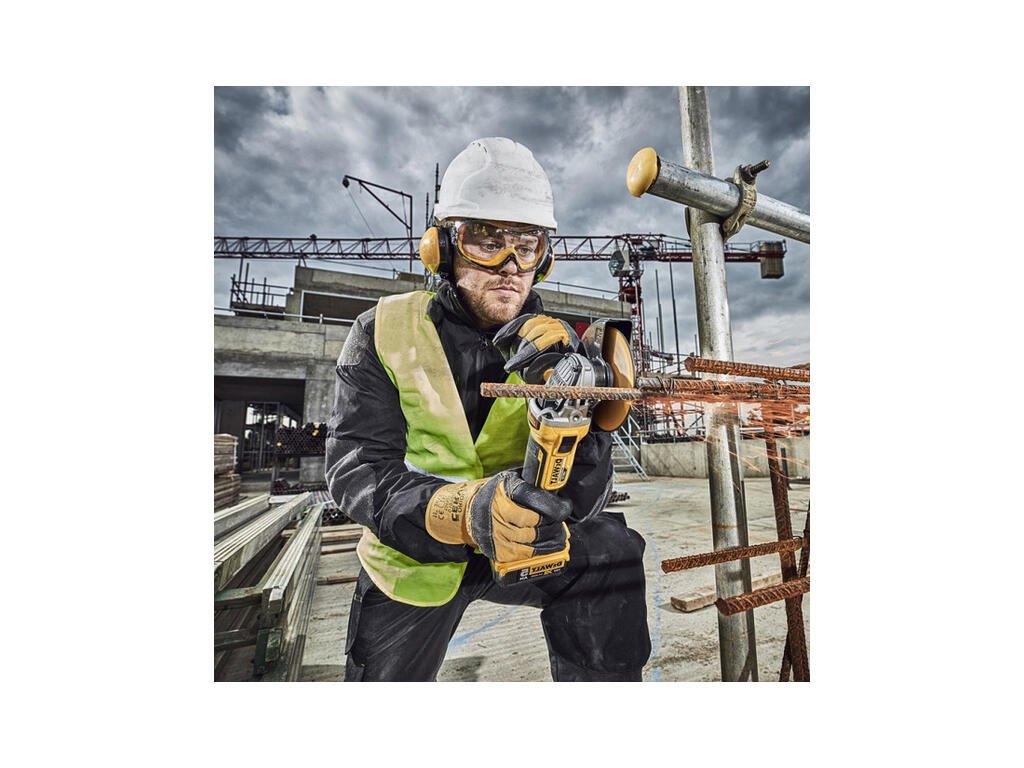 - Akumulátorová uhlová brúska DeWALT DCG405NT s bezkomutátorovým (bezuhlíkovým) motorom.