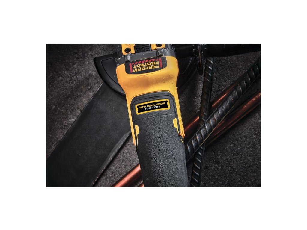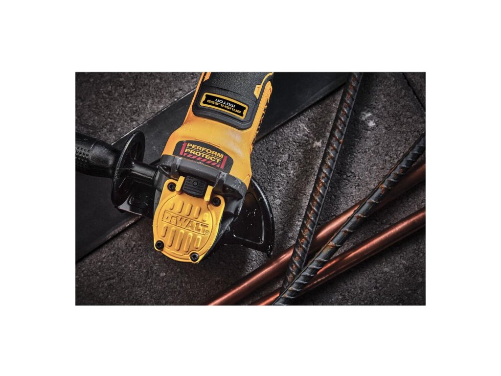 Model DCG409, ktorý je súčasťou radu DEWALT® Perform & Protect, je vybavený integrovanou brzdou proti spätnému rázu a systémom E-CLUTCH proti otáčaniu, aby sa zabezpečila zvýšená ochrana používateľa.
