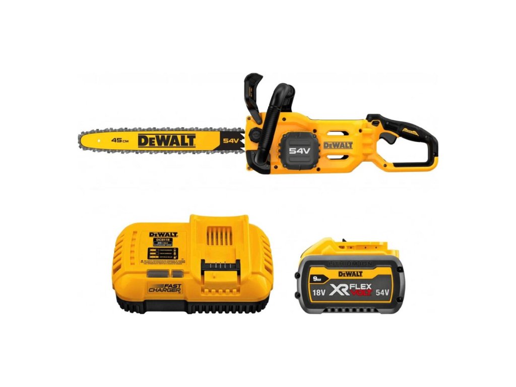 - 1 x DEWALT 54V XR FLEXVOLT™ Aku reťazová píla 45 cm.