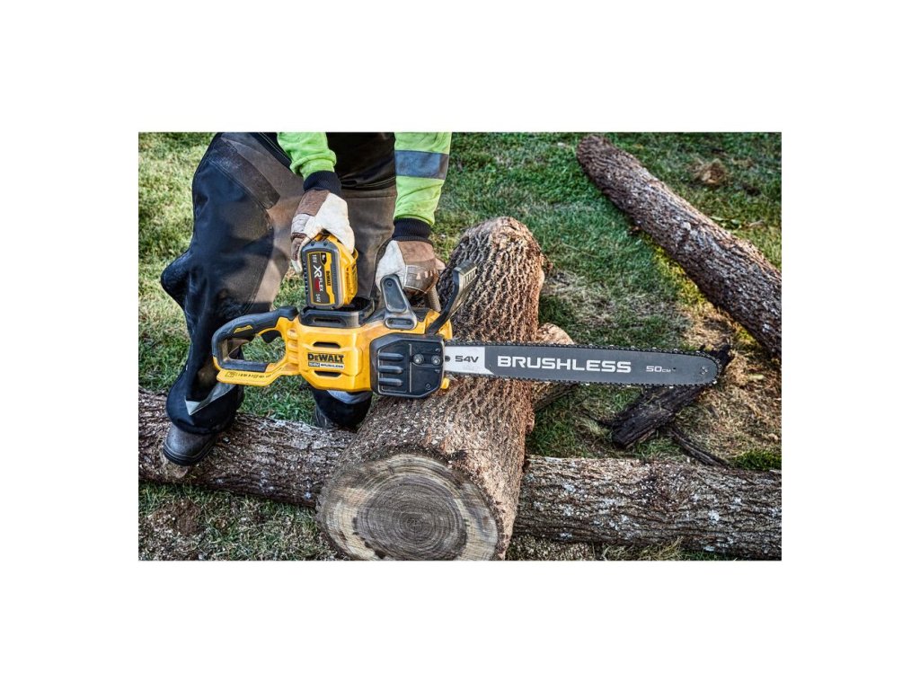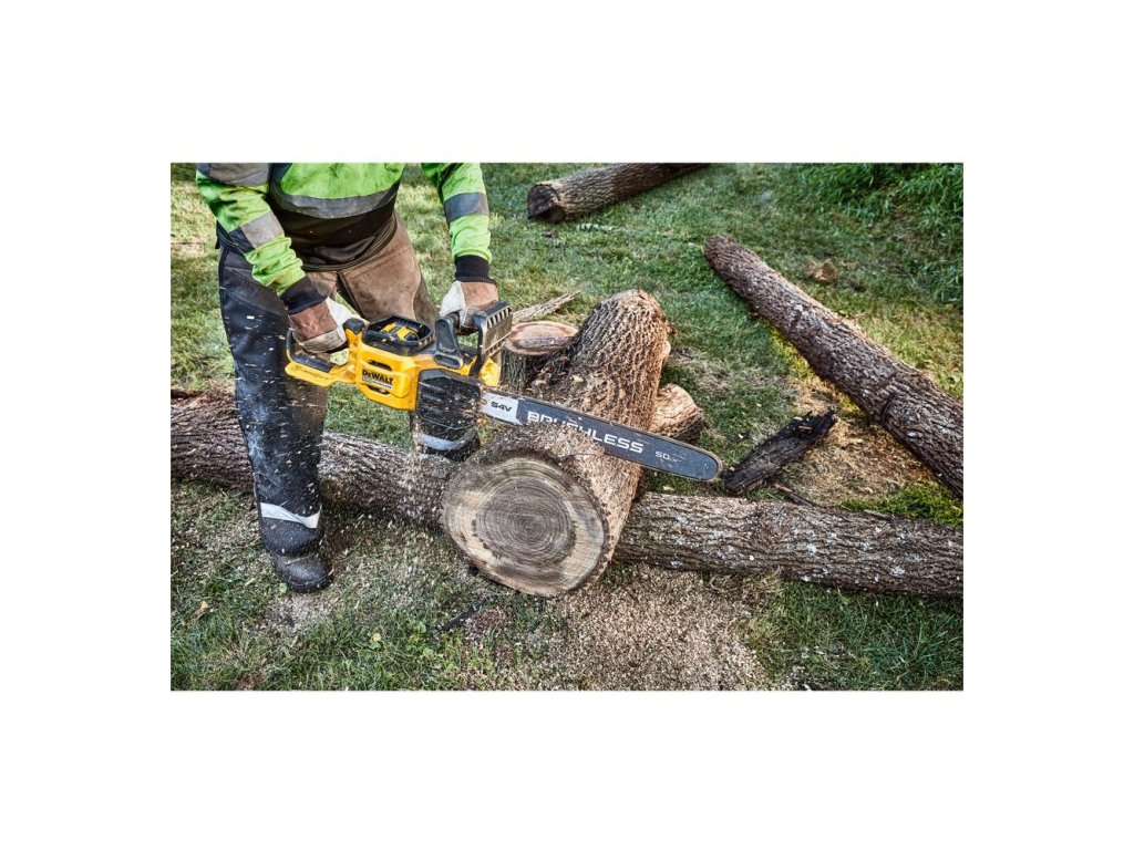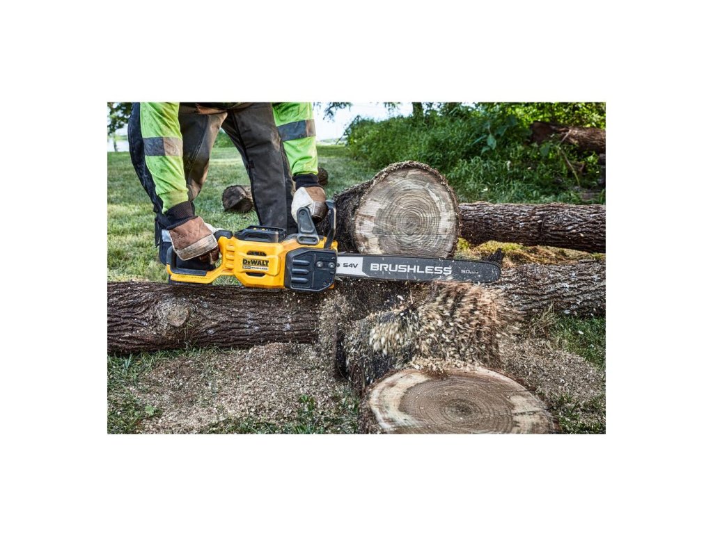 Ako súčasť výkonnej batériovej platformy Flexvolt je DeWalt DCMCS575 54V akumulátorová reťazová píla s výkonom porovnateľným s benzínovými strojmi s objemom 50 cm3.
