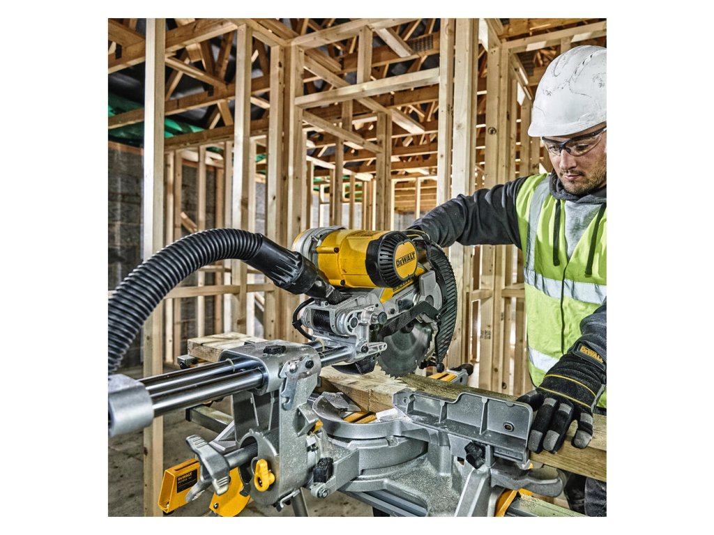 Píla DWS727 je navrhnutá tak, aby poskytovala opakovanú presnosť pomocou dvoch vodorovných vodiacich tyčí a kvalitné dorazové dosky z nerezovej ocele, na ktoré sú vyznačené polohy pre 0, 15, 22,5, 31,6, 35,3 a 45 stupňov.