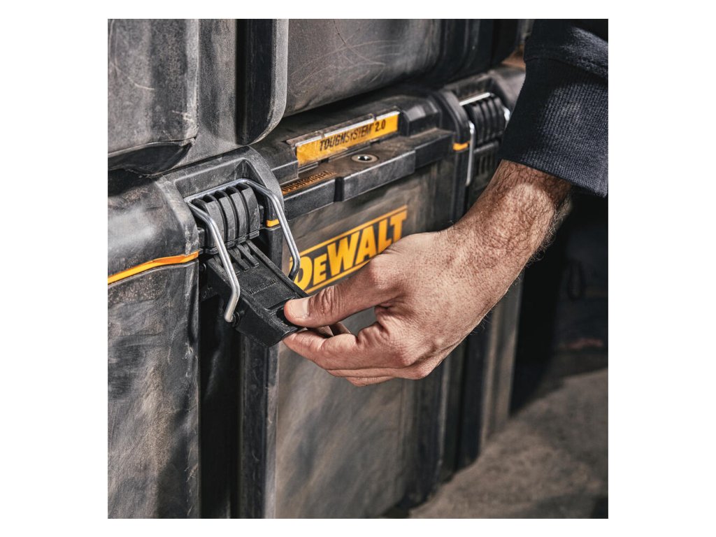 - Vylepšený kufor DWST83295-1 ToughSystem 2.0 je opatrený novou snímateľnou vyťahovacou rukoväťou, ktorá umožňuje pohodlnejšie uloženie a jednoduchšie použitie napríklad vo vozíkoch.