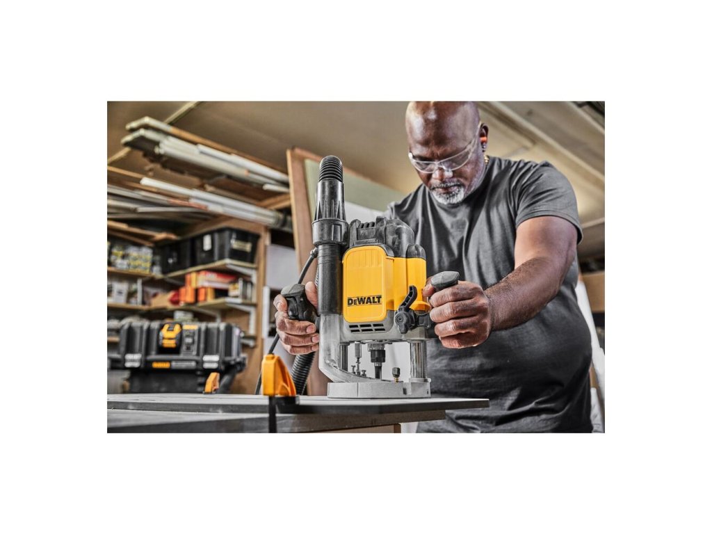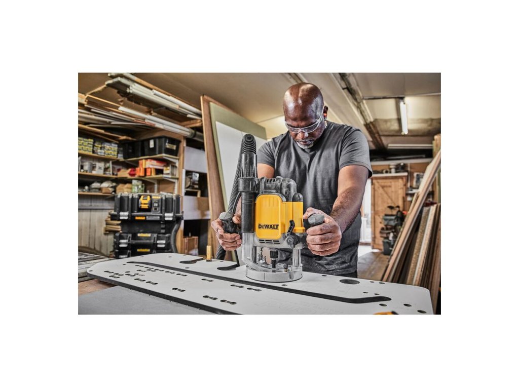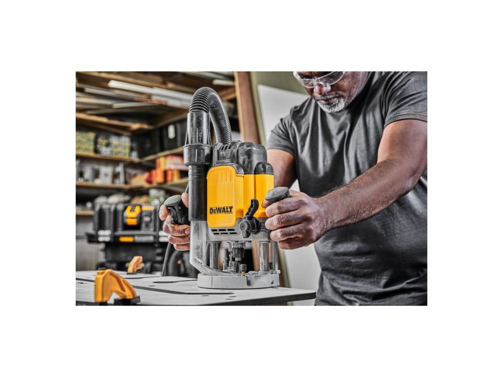 Fréza DWE625 má výkon 2 300 W na najnáročnejšie materiály a použitie, ako je rezanie pracovných dosiek a frézovanie a je ideálna na použitie na pracovisku a v dielni.