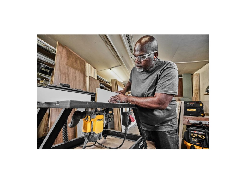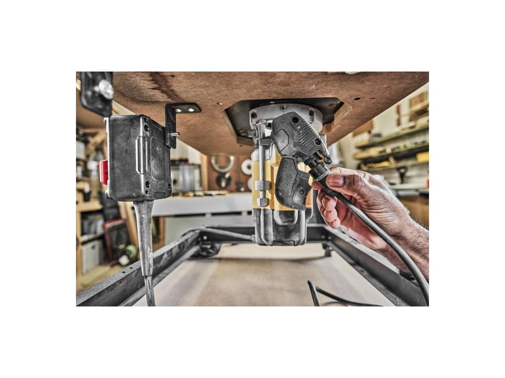 Fréza DWE627 má výkon 2 300 W na najnáročnejšie materiály a použitie, ako je rezanie pracovných dosiek a frézovanie a je ideálna na použitie na pracovisku a v dielni.