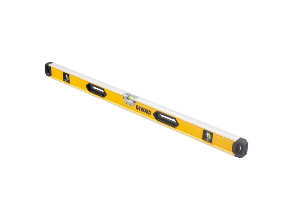 1200 mm (4-stopová vodováha) značky DEWALT® je ideálna pre rôzne profesie.Vodováha má veľký prierez, blokové bubliny, zväčšenú stredovú bublinu, robustné kovové + tvarované koncovky, liatinový držiak stredovej bubliny a premostenú stredovú bublinu.
