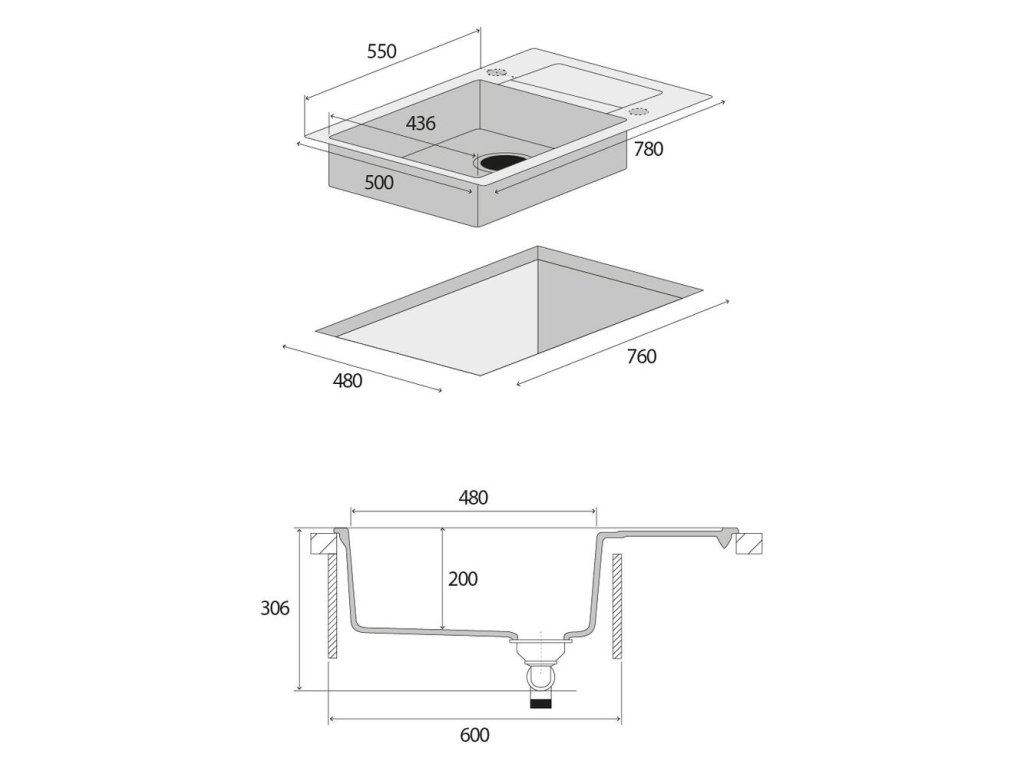- Rozmery vaničky (d x š x h): 436 x 480 x 200 mm
