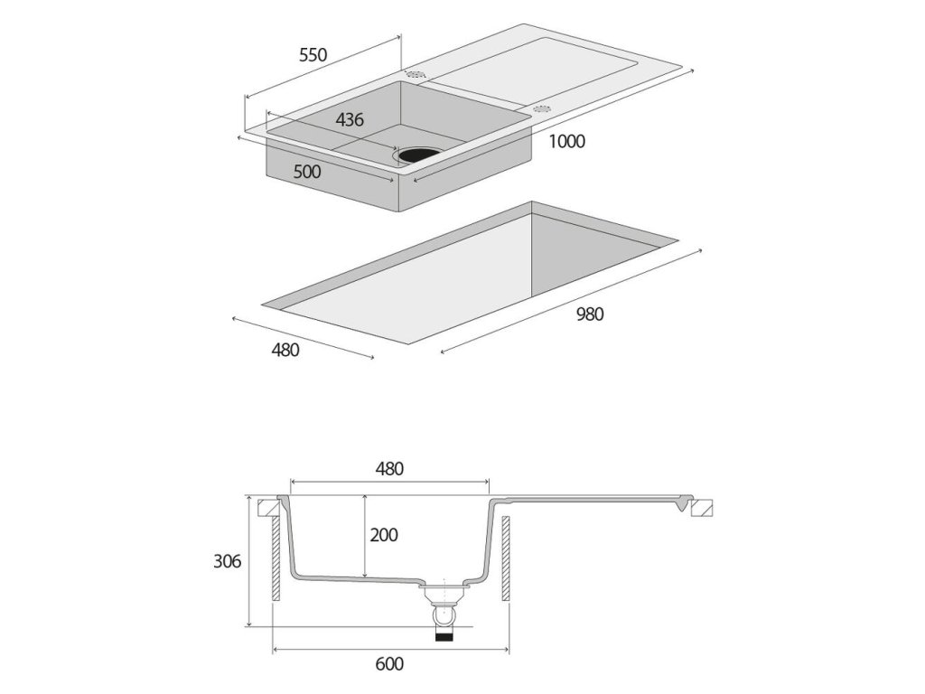 Model DG15L60bc je hranatý kuchynský drez s priestorným odkvapom. Je vhodný pre montáž na dosku s minimálnou šírkou skrinky 60 cm. Je opatrený sieťkovým ventilom 3 1/2" s prepadom a sifónom s odbočkou na umývačku riadu. Benefitom sú dva predvŕtané otvory, takže vám odpadá nepríjemná práca s ich vyvrtávaním. Súčasťou balenia sú i kovové súčiastky na uchytenie drezu k pracovnej doske.