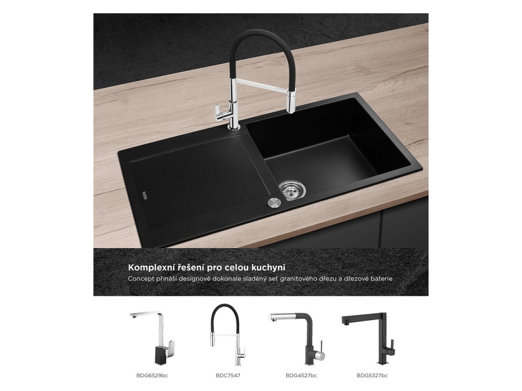 Atraktívny vzhľad, kvalitné spracovanie, vysoká odolnosť a ľahká údržba, to sú hlavné prednosti granitových drezov Concept. Perfektne zapadnú do každej kuchyne a v kombinácii s batériami Concept tvoria dokonale zladený celok. Model DG15L60bc je súčasťou designovej rady LINEA, ktorú spájajú moderné hranaté línie a v kuchyni pôsobí veľmi nadčasovým a elegantným dojmom.