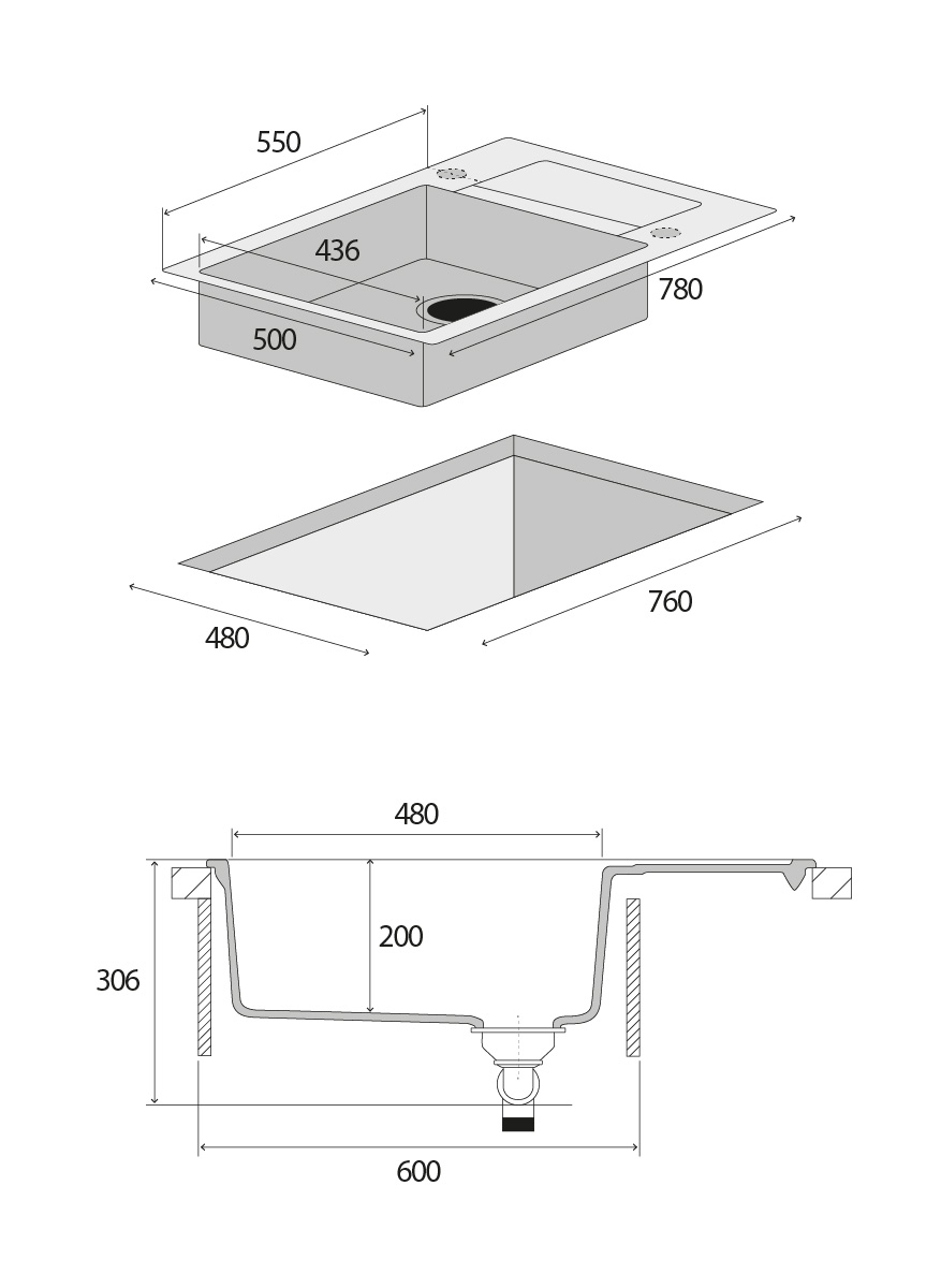 - Rozmery vaničky (d x š x h): 436 x 480 x 200 mm