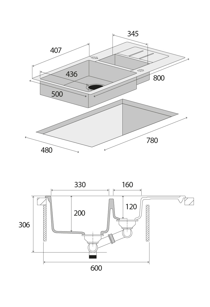 Model DG205C60bc je hranatý kuchynský drez s odkvapom. Je vhodný pre montáž na dosku s minimálnou šírkou skrinky 60 cm. Je opatrený sieťkovým ventilom 3 1/2" s prepadom a sifónom s odbočkou na umývačku riadu. Benefitom sú dva predvŕtané otvory, takže vám odpadá nepríjemná práca s ich vyvrtávaním. Súčasťou balenia sú i kovové súčiastky na uchytenie drezu k pracovnej doske.