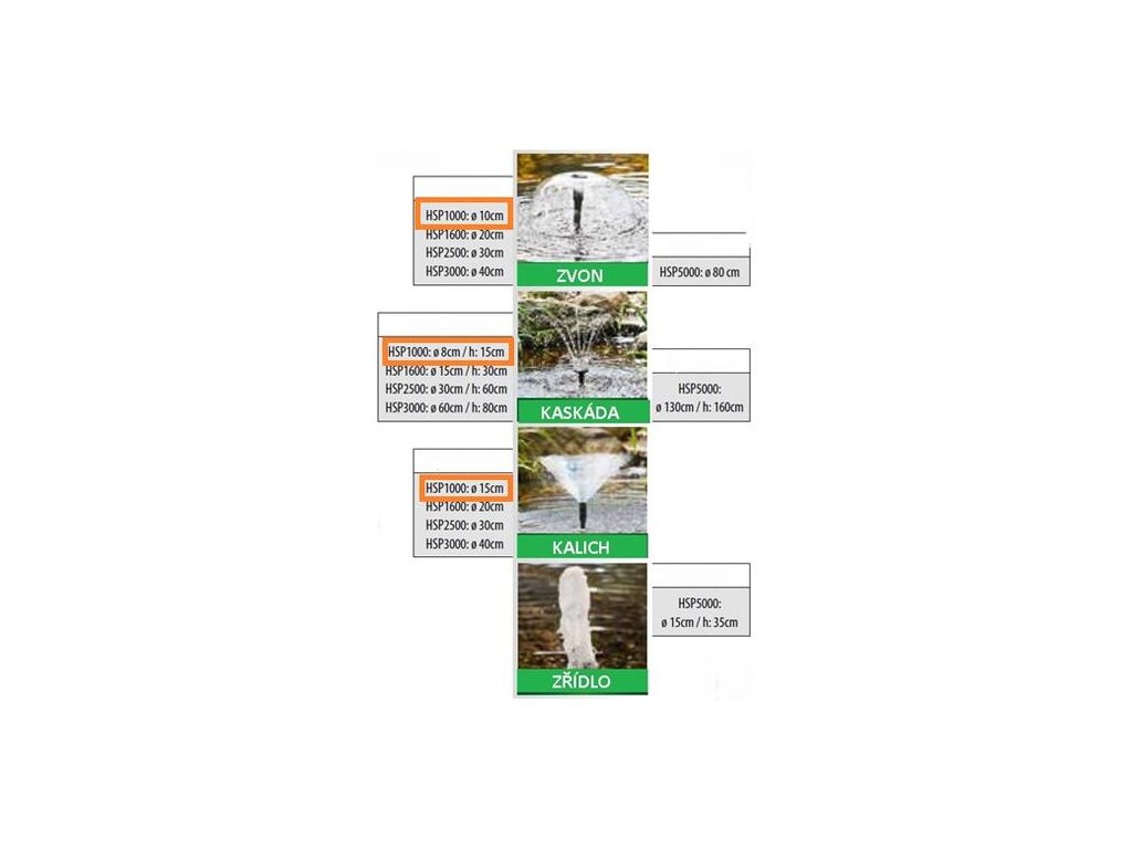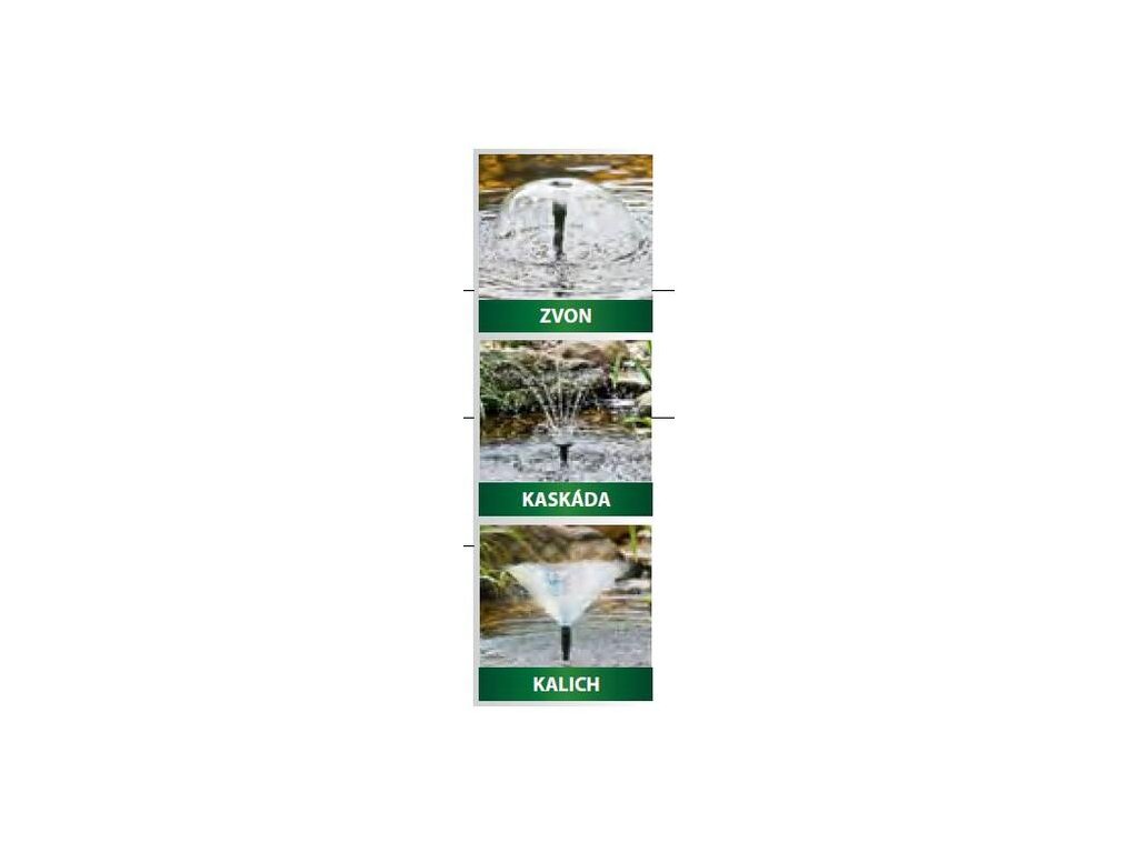 - 3 vodné efekty: Vodný zvon, kalich, kaskáda