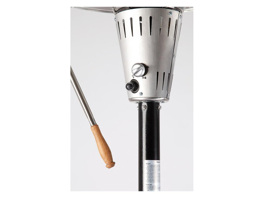 poistným ventilom, ktorý pri páde uzavrie prívod plynu. Piezo zapaľovanie. Regulácia výkonu. Príslušenstvo k pripojeniu je súčasťou balenia.