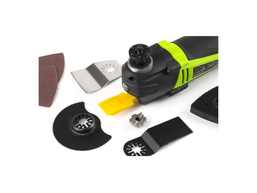 Pomocou veľkej variability nástavcov je možné materiál brúsiť alebo leštiť, s nástavcom trojuholníkového tvaru docielite dosah aj do menej prístupných miest, rezať kovové predmety ako rúrky, klince, skrutky alebo vyrezávať presné tvary do pracovných dosiek, skriniek, či sadrokartónu.