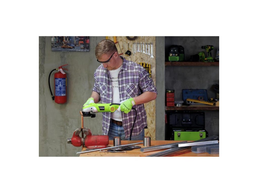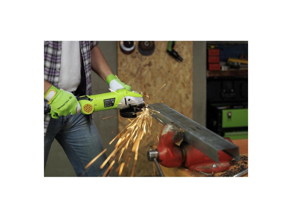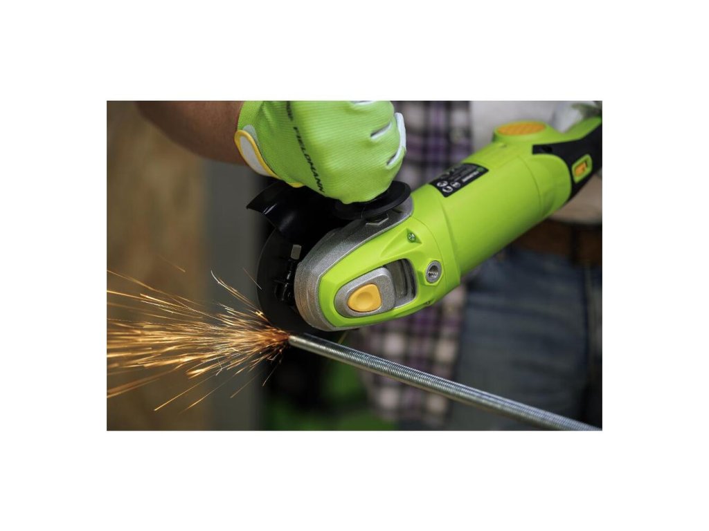 - Uhlová brúska je dodávaná vrátane bočnej rukoväte, ktorú je možné preložiť tak, ako vám vyhovuje pri práci (ľavá strana, pravá strana a na vrchnú časť brúsky).