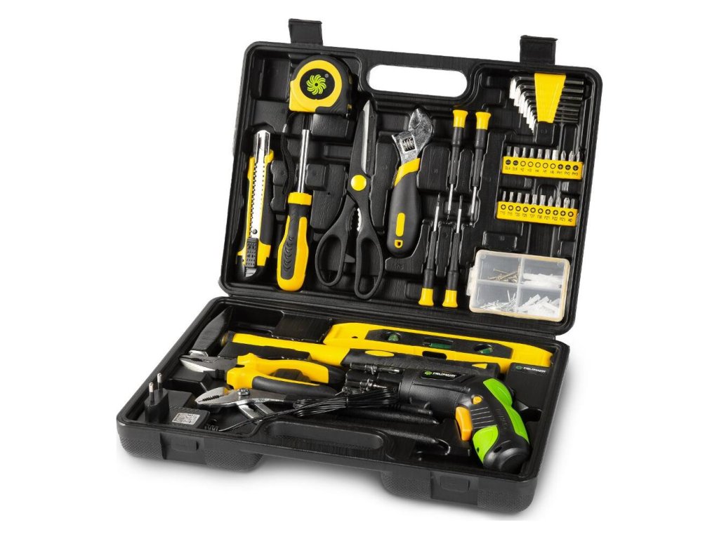 Sada náradia obsahujúca vyše sto kusov vrátane obľúbeného aku skrutkovača FDS 10102-A ktorý je ideálnym všestranným pomocníkom. Neoddeliteľnou súčasťou sady sú kombinované kliešte, vodováha, meter a kladivo. Náradie je uložené v pevnom plastovom kufríku s ergonomickou rukoväťou, ktorá zaisťuje otvorenie kufríka zo správnej strany tak, aby sa náradie nevysypalo von.