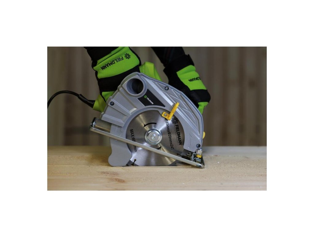 - Kotúčová píla značky FIELDMANN vďaka svojmu pevnému spracovaniu a dostatočnému výkonu 1 200 W ľahko zvládne akúkoľvek výzvu v dielni či na stavbe.