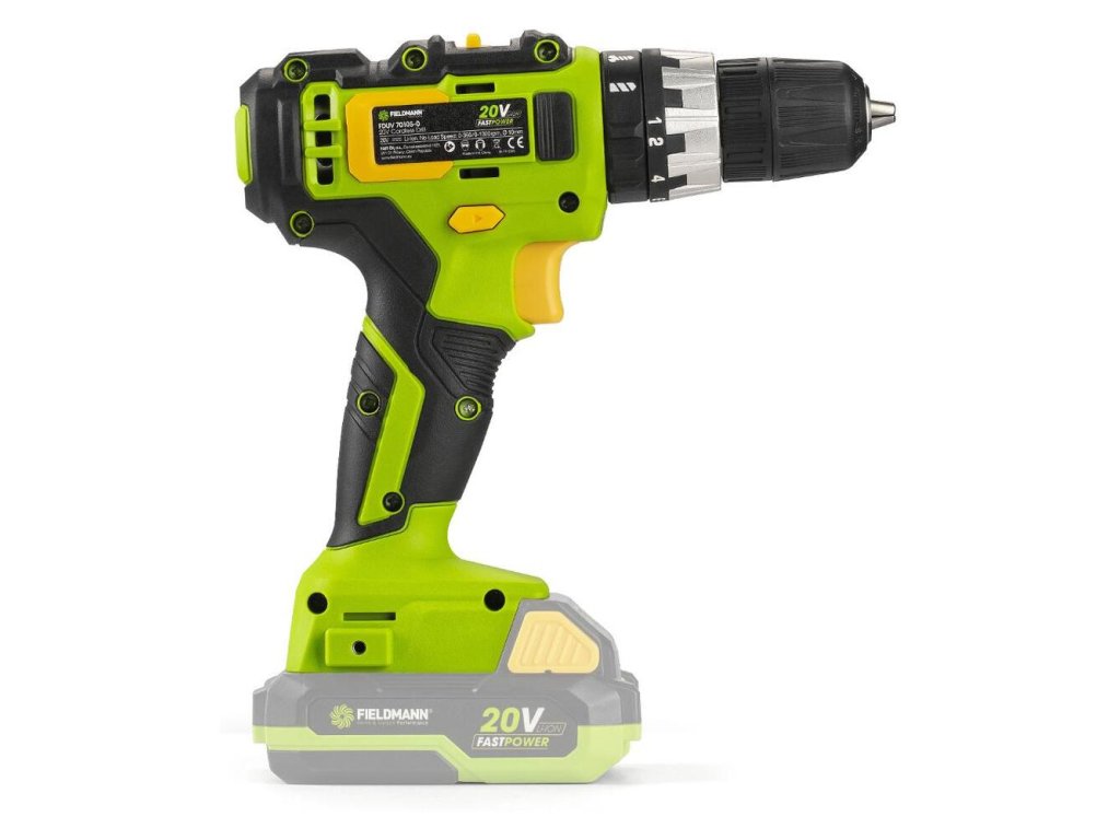 - Je možné použiť akumulátory o kapacitách 2 Ah / 4 Ah, ktoré sú kompatibilné do všetkých výrobkov spoločnosti FIELDMANN radu FAST POWER 20V.