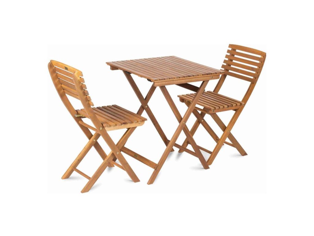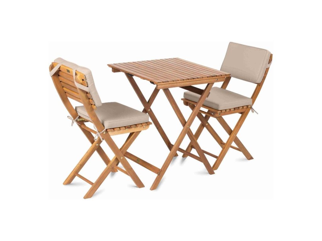 Drevená balkónová sada, ktorú bez problémov odložíte aj mimo letnej sezóny. Väčšia a pohodlnejšia zostava balkónového nábytku obsahuje ľahko zložiteľný štvorcový stolík a 2 kusy stoličiek. K tejto sade je pre lepšie pohodlie možné dokúpiť vankúše a chrbtové opierky.