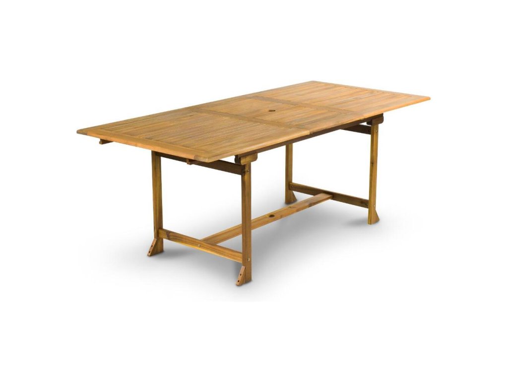 Skladací stôl jednoduchej a praktickej konštrukcie. Drevený záhradný stôl môžete skladať a rozkladať podľa potreby. Výhodou stola je otvor na slnečník, ktorý bráni priamemu slnečnému žiareniu.