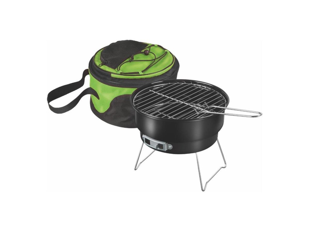 Prenosný gril je možné použiť na záhrade, pri stanovaní či na rybačke. Jeho rozmery sú 26 x 12,5 cm a je uložený v multifunkčnej termotaške. Termotaška sa stáva neodlučiteľnou súčasťou grilovačky na uchovanie chladných nápojov.