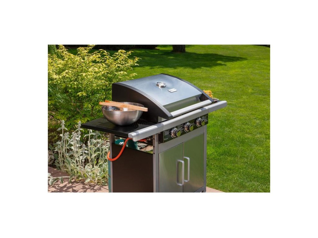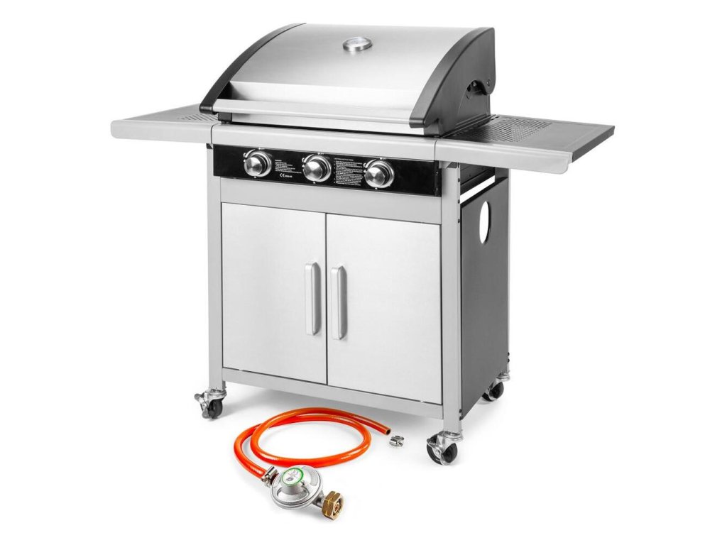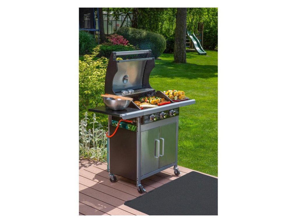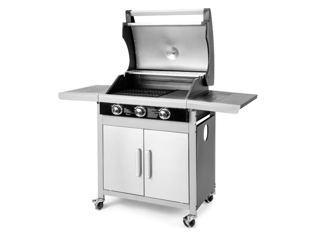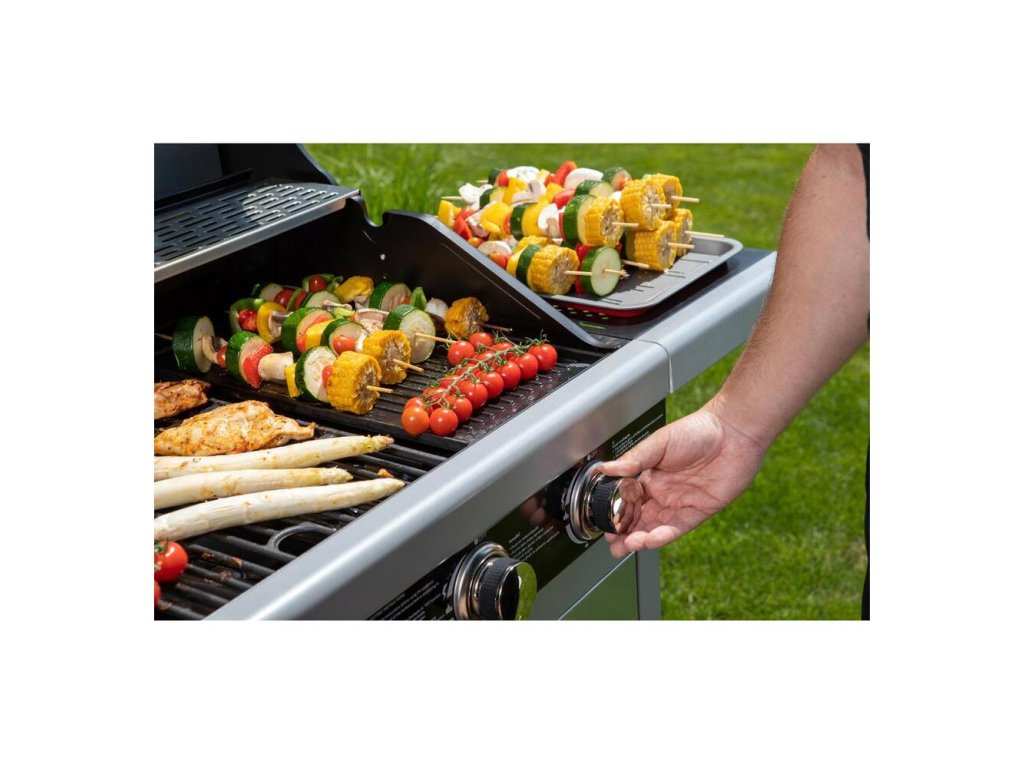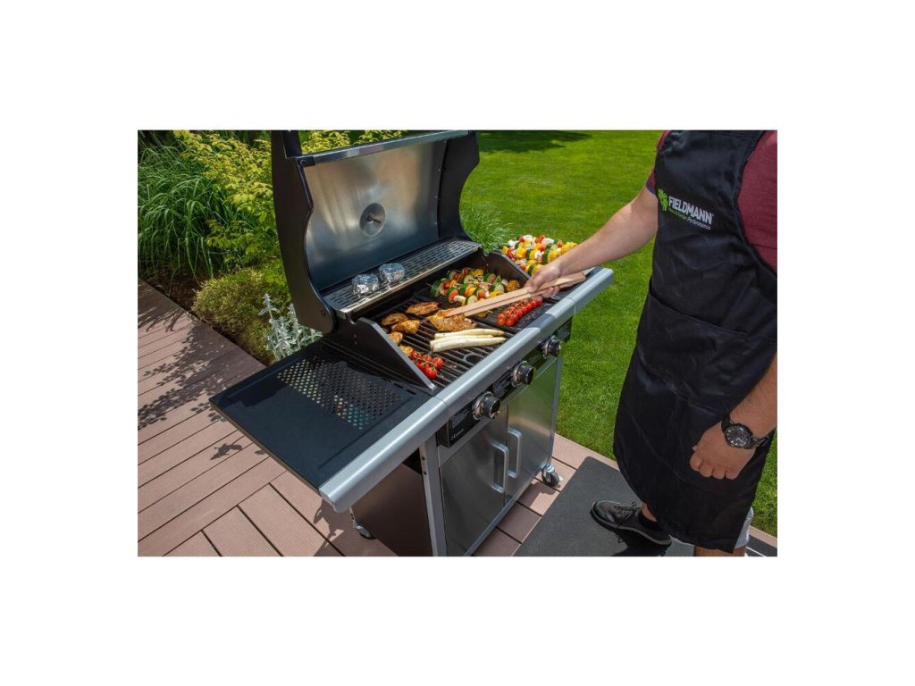 Plynový gril Fieldmann FZG 3005 je skvelý na prípravu grilovaných jedál počas letných večerov a posedení s priateľmi. Má 3 hlavné horáky, na ktorých môžete súčasne pripravovať rôzne špeciality a dostatočne veľkú grilovaciu plochu 60 × 42 cm. Veko, madlo a dvierka sú vyrobené z nerezovej ocele, ktorá zaručuje dlhú životnosť. Gril disponuje úložným priestorom na odloženie mäsa a korením. Štyri prídavné kolieska s brzdou uľahčujú manipuláciu. Vo veku grilu sa nachádza aj vstavaný prehľadný teplomer, ktorý signalizuje stupeň rozpálenia grilu.