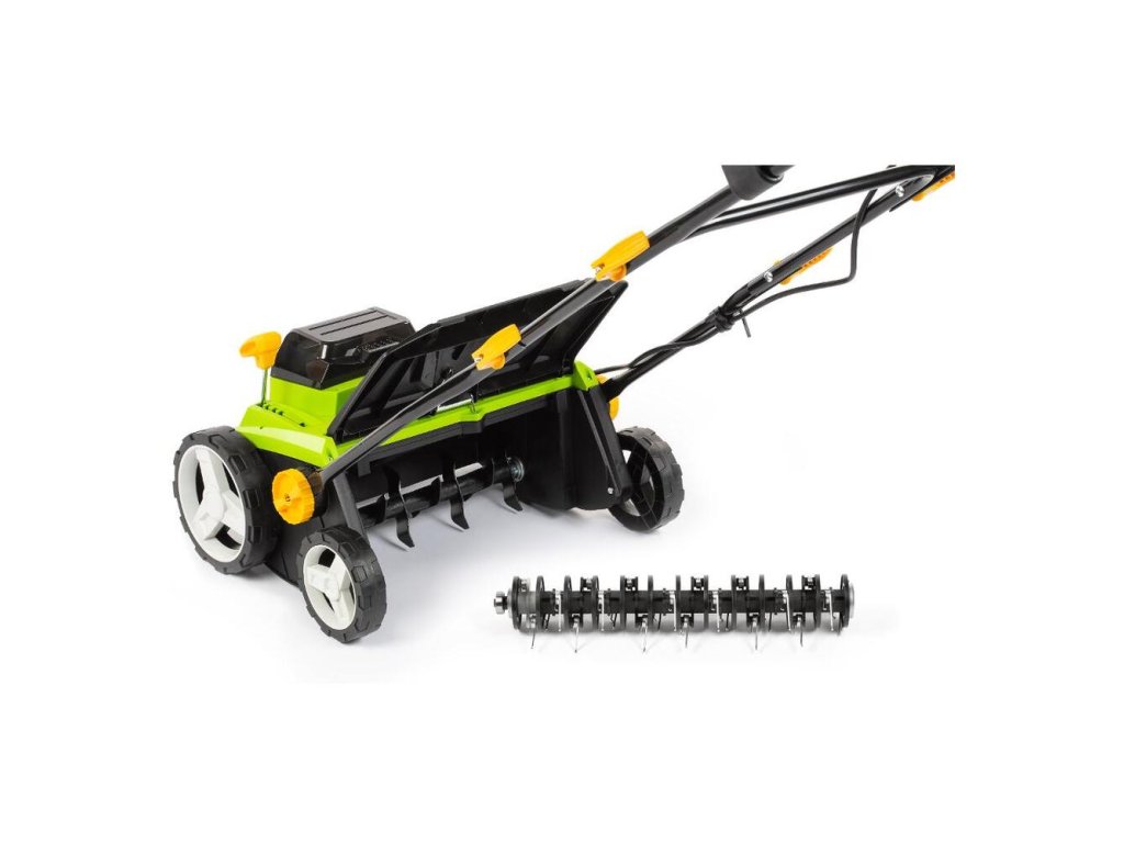 Pokiaľ chcete mať trávnik v dobrom stave, tak ho nestačí iba kosiť a občas pohnojiť, ale je vhodné poskytnúť mu dodatočnú starostlivosť pomocou vertikutátora, ktorý trávnik prevzdušní a zbaví ho odumretých častí či machu. Preč sú doby, kedy bolo možné vyberať iba medzi nepohodlnosťou predlžovacieho kábla či splodín zo spaľovacieho motora. Oba problémy vyriešia najmodernejší bezuhlíkový motor nášho AKU vertikutátora. Stroj disponuje 16 nožmi pri zábere 38cm.
