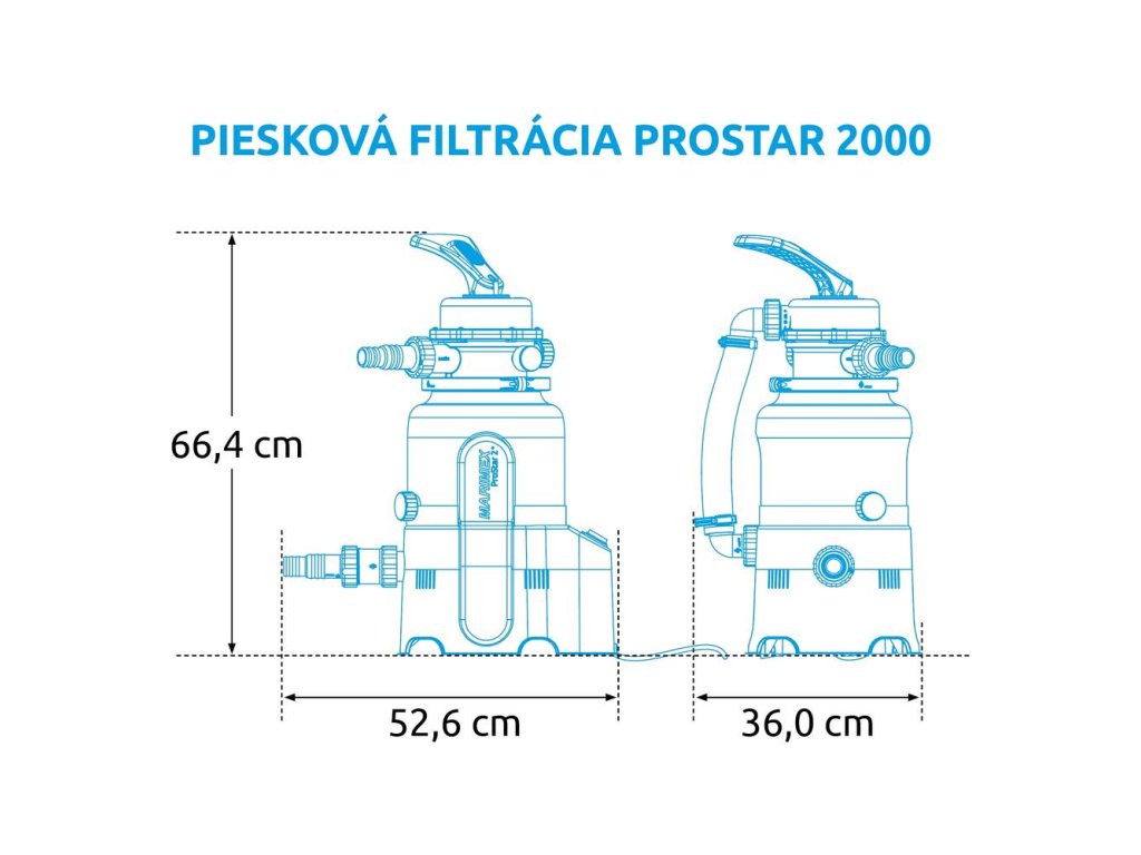 Piesková filtrácia ProStar 2000, vyrobená v Českej republike je svojim výkonom vhodná pre bazény do objemu 8 m3. Ideálnym príslušenstvom je predovšetkým pre menšie bazény.