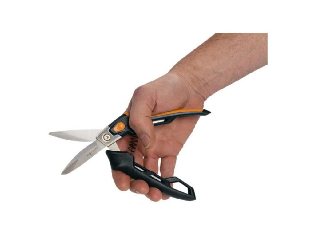 Univerzálne nožnice PowerArc sa môžu pochváliť inteligentne zahnutými čepeľami, ktoré sú schopné zmeniť uhol, ktorý zvierajú. Poskytujú vám tým viac než dvojnásobok sily, najmä v najťažšej časti strihu. Offsetové vyhotovenie a odolné čepele z nehrdzavejúcej ocele umožňujú strihanie zhora i zospodu, čím odpadávajúci materiál smeruje mimo vašu ruku.