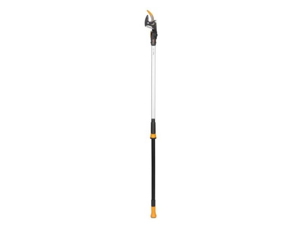 Nastaviteľná hlava nožníc a jednoduchý strižný mechanizmus zaisťujú rýchle a bezpečné strihanie vetiev z veľkej vzdialenosti.