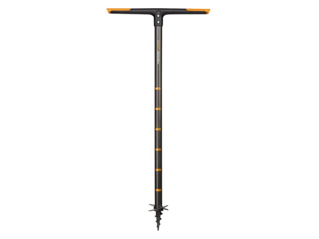 QuikDrill™ Fiskars není konstruován tradičním způsobem s dlouhou spirální šroubovicí ale má dvě optimálně nakloněné čepele z bórové oceli upevněné kolem ostrého hrotu.Tento design umožňuje pronikat i do tužších půd s menším odporem a brání mačkání země.