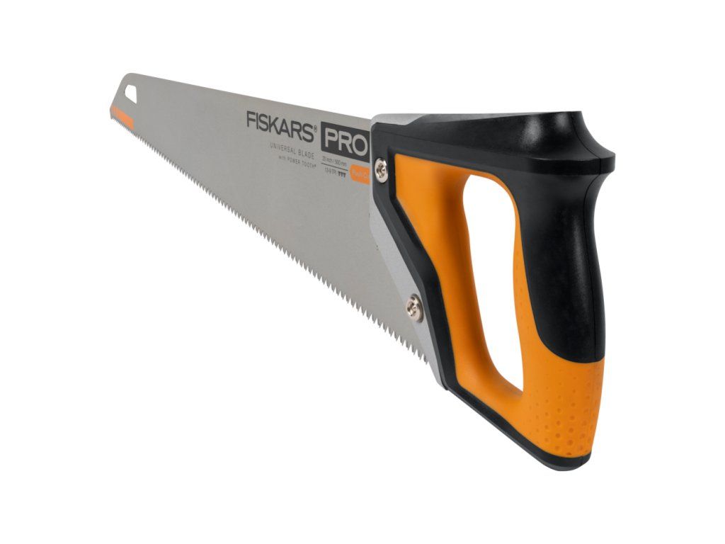 Ručná píla Fiskars Pro Power Tooth má trojito brúsený nôž na rýchlejšie a výkonnejšie rezy.Technológia čepele RapidStart™ ponúka lepšiu kontrolu a prakticky žiadne viazanie pre rýchlejšie a čistejšie začiatky rezu. Stredná a pätná časť čepele má 9 TPI pre silné a hladké rezy všetkými druhmi dreva i laminátom, PVC a ďalšími materiálmiDotykové body rukoväte SoftGrip™ majú inovatívne, patentované textúrovanie, ktoré vytesňuje vlhkosť, zabraňuje tvorbe pľuzgierov a zaisťuje nekĺzavý úchop. Špeciálne tvarovanie hornej časti rukoväte umožňuje umiestniť druhú ruku na hornú časť píly pre väčšiu silu a kontrolu pri najťažších rezoch.Nadmerne veľká rukoväť je vhodná pre väčšie ruky a ruky v rukaviciach