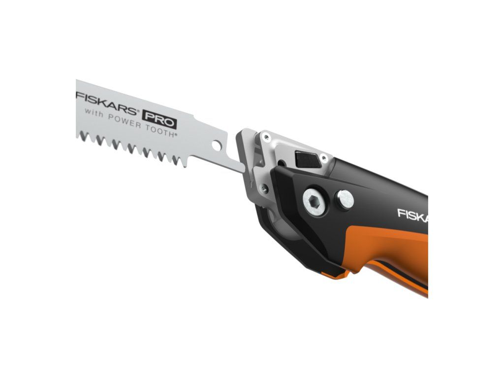 Kompaktná píla Fiskars Pro Compact je navrhnutá tak, aby zvyšovala produktivitu na stavenisku jednoduchým uložením na opasok