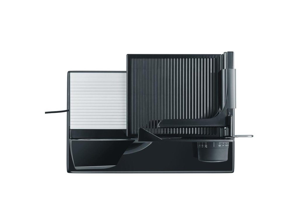 Elektrický krájač, zúbkovaný nerezový rezný kotúč s priemerom 170 mm s bezpečnostným odnímateľným krytom, úplne nová revolučná konštrukcia, kompaktná konštrukcia, minimálne nároky na miesto, vysoko stabilné prevedenie s opornou doskou, plastový kryt motora, ochrana proti preťaženiu, držiak krájaných potravín s plastovou opierkou, hrúbka rezu 0 - 20 mm, oporná doska potravín a vodič vozíka potravín vyrobený z hliníka, Eco Power Motion motor - úsporný 45W motor s riadiacou jednotkou, ktorý iba pri plnom zaťažení dosahuje príkonu 170W, pohon sprevodovanie ozubenými kolesami, držiak potravín, farba čiernaDodatočné parametre
