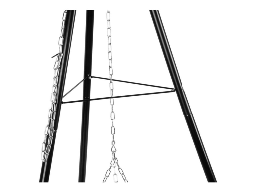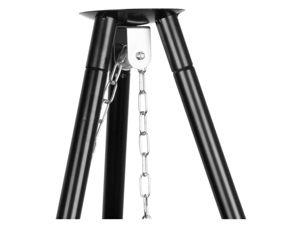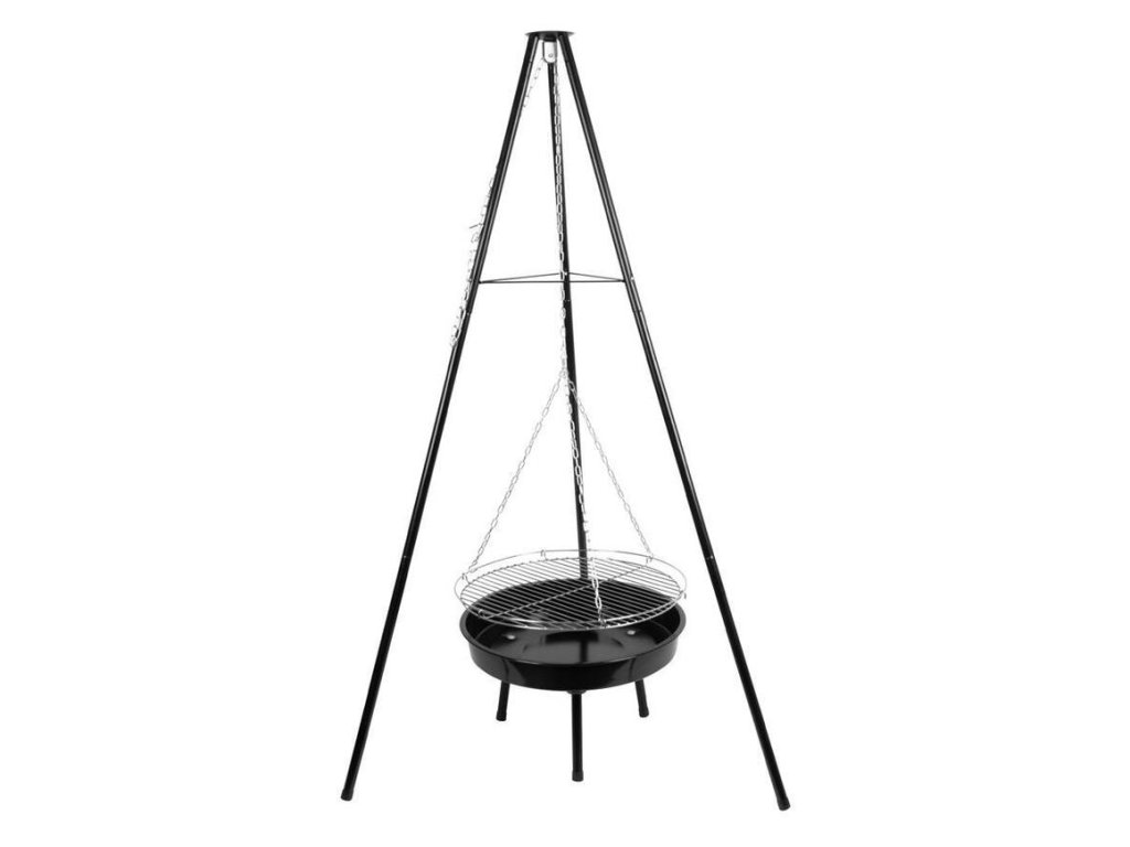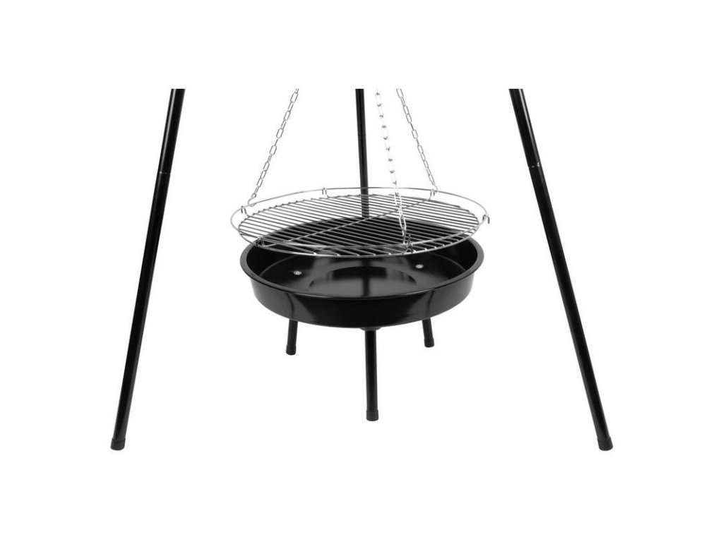 Závesný gril je ideálny typ grilu na grilovanie nie len na záhrade, ale taktiež kdekoľvek v prírode. Vďaka možnosti jeho rozkladu na menšie prenosné časti je manipulácia s ním jednoduchá a samotné zloženie a rozloženie vám nezaberie viac ako pár minút. Jeho výhoda spočíva v zložení z dvoch oddeliteľných častí. Hlavnú konštrukciu tvorí trojnožkový stojan, na ktorý sa následne upevní pozinkovaná reťaz. Posledným krokom je už len zavesenie samotnej grilovacej časti na visiacu reťaz. Príslušná miska sa dá využiť na varenie, vyprážanie alebo umiestnenie uhlia a má hrúbku 0,5 mm. Na misku sa v prípade grilovania umiestni pozinkovaná mriežka, ktorá má rozmery 4,5 x 2,5 mm a celkový priemer varnej plochy je 51 cm. Varná výška je v rozmedzí od 320 do 660 mm. Celý gril je v klasickej čiernej farbe a jeho hmotnosť je iba 4,76 kg.