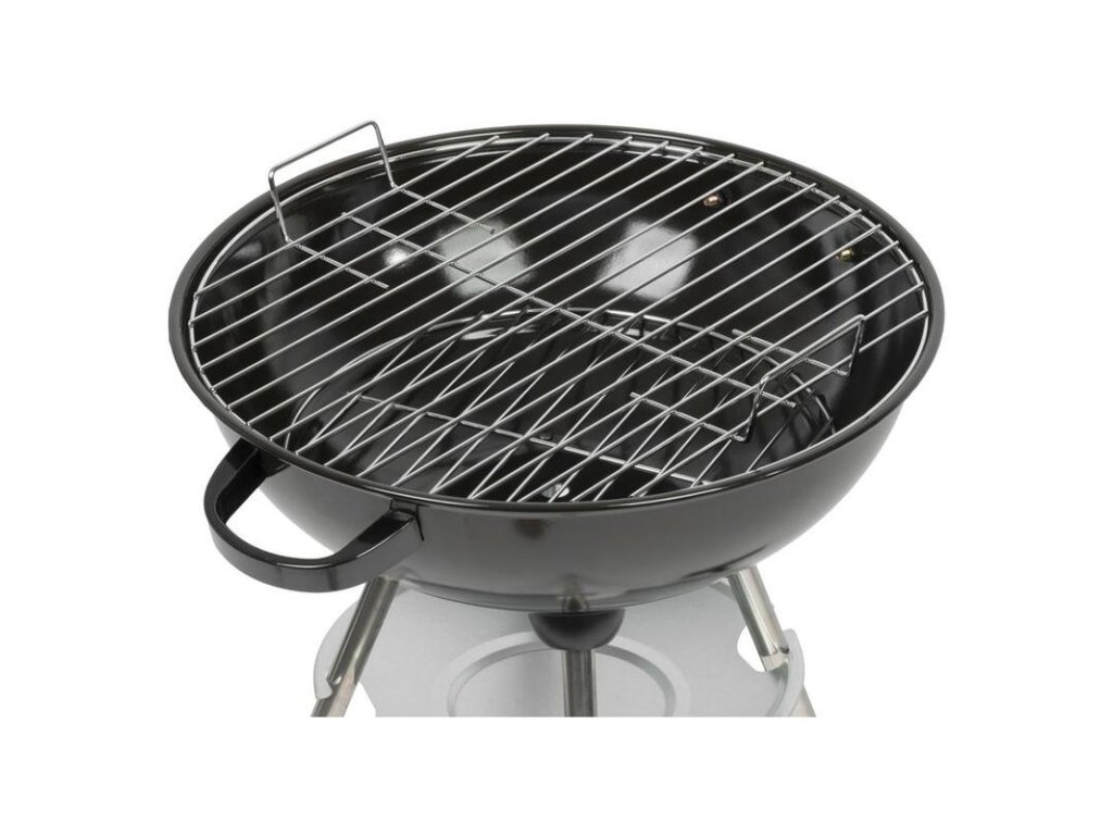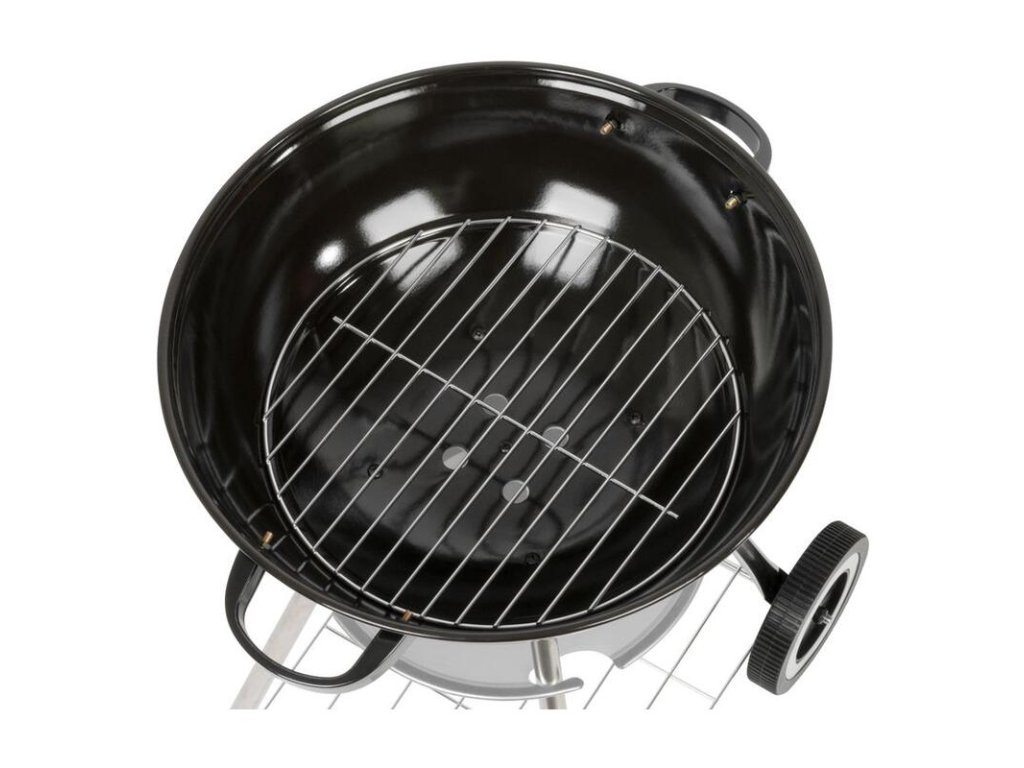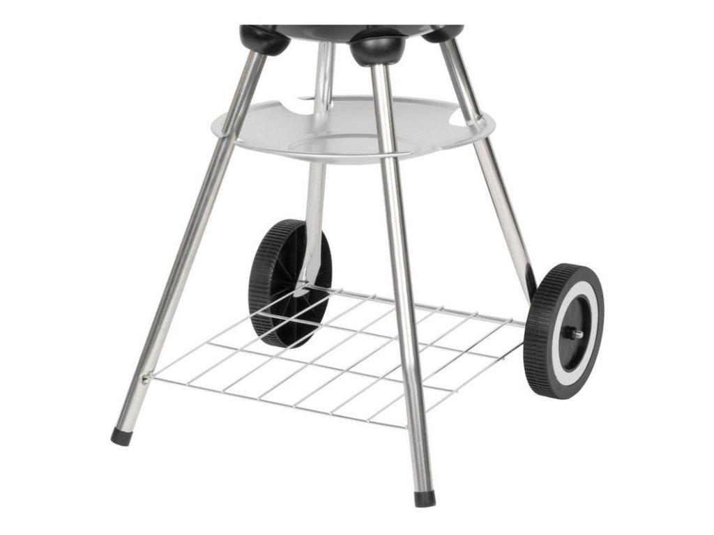 Stabilná kovová konštrukcia zabezpečuje bezpečné a pohodlné používanie, zatiaľ čo chrómovaný grilovací rošt umožňuje rovnomerné prepečenie jedla.