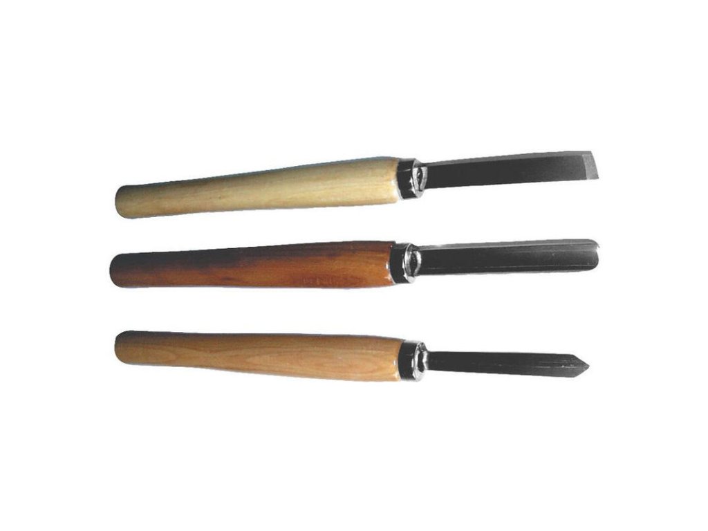 - 3-dielna sada sústružníckych dlát (drevené rukoväte/oceľové nože 100 mm).