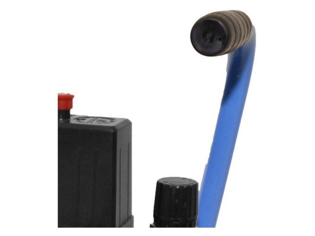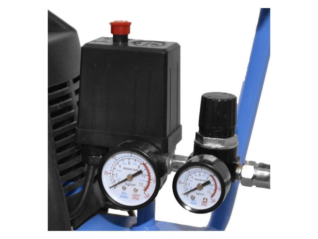 Bezolejový 1-valcový piestový kompresor s priamym pohonom, rukoväť, manometer tlaku v kotle a pracovného tlaku. Redukcia tlaku, 1 spojka stlačeného vzduchu, poistný ventil a skrutka na vypúšťanie kondenzátu, spätný ventil. Vzduchový filter.